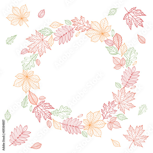 Autumnal Round Frame Wreath Of Autumn Leaves Hand Drawn Autumn Leaves Fall Of The Leaves Sketch Design Elements Vector Illustration Buy This Stock Vector And Explore Similar Vectors At Adobe Stock Tamburo Stampante In Inglese