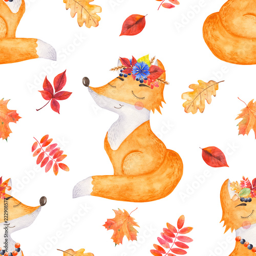 - Watercolor Seamless Pattern With Autumn Leaves And A Cute Cartoon Fox Texture For Children S Decor Shower Cards Cloth Wallpaper Packaging Buy This Stock Illustration And Explore Similar Illustrations At Adobe Stock Aesthetic Iphone Girly Black And White Wallpaper,