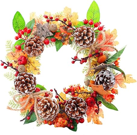 - Alacritua Autumn Door Wreath Fall Wreath Autumn Wreaths For Front Door With Pumpkins Berries Maple Leaves Fall Harvest Wreath For Autumn Thanksgiving Halloween Wall Hanging Decor 19 69in Amazon Co Uk Kitchen Home
