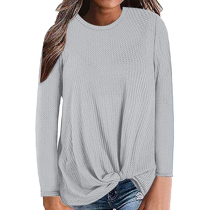 - Hiriri Women S Waffle Knit Tunic Shirts Long Sleeve Blouse Twist Knot Casual Cute Loose Autumn Tops At Amazon Women S Clothing Store