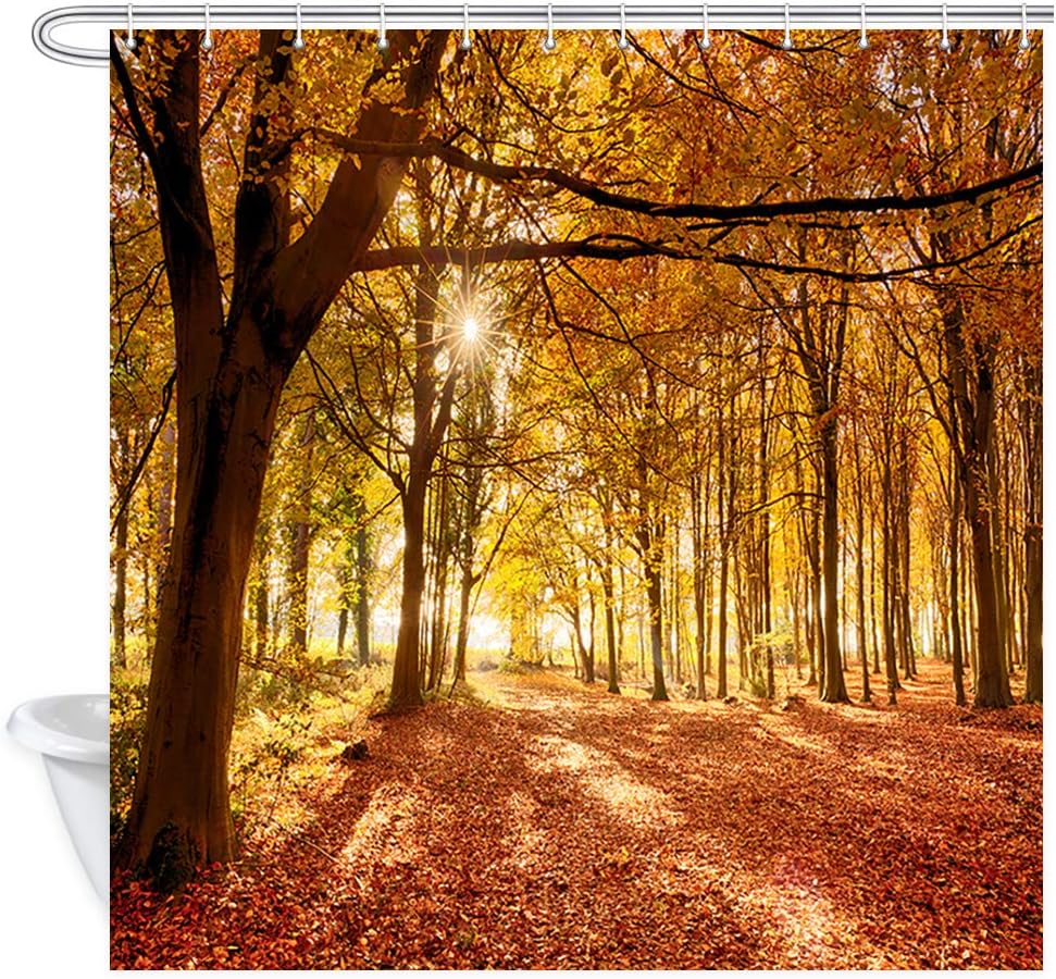 Amazon Com Dynh Fall Forest Shower Curtain Woodland Floor Covered In Bright Orange Fall Autumn Colour Leaves And Sunlight Bursting Through Trees Fabric Shower Curtains For Bathroom 12pcs Hooks 69x70in Home Kitchen Il Tamburo Di Latta Libro Recensione