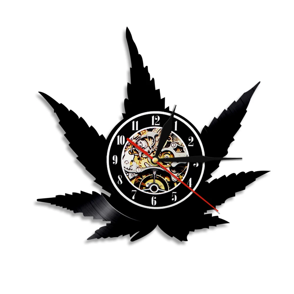Weed Leaf Retro Wall Clock Vinyl Record Wall Clock Non Ticking Marijuana Leaf Silhouette Green Artistic Herbal Medicine Wall Art Wall Clocks Aliexpress Metals In Mixed Groups Periodic Table